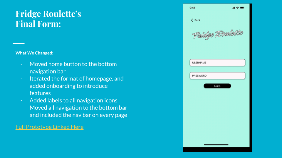 In response to the pervasive struggle of deciding "What's for dinner tonight?" and the wasteful excess of ingredients due to food packaging and purchasing practices, I took on a dual role as a UX researcher and a UX/UI designer, within my team. With a comprehensive approach, I explored user experiences, understanding their pain points and frustrations. With these insights, we conceived "Fridge Roulette" – a transformative platform that compiles recipes tailored to surplus ingredients.